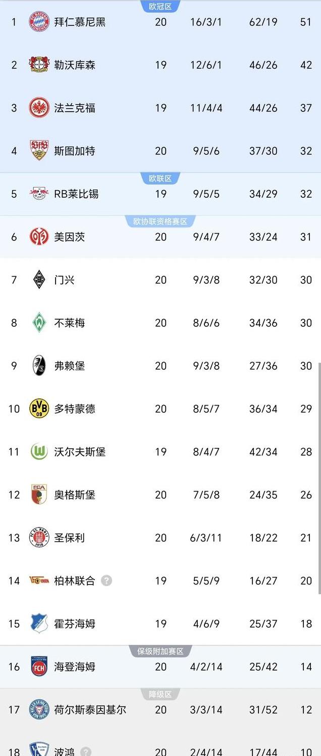 随着这几场比赛结束,德甲积分榜第4名的争夺愈发激烈!目前第4至第9这6支球队之间最高仅相差2分,一场比赛就能使排名发生大变!