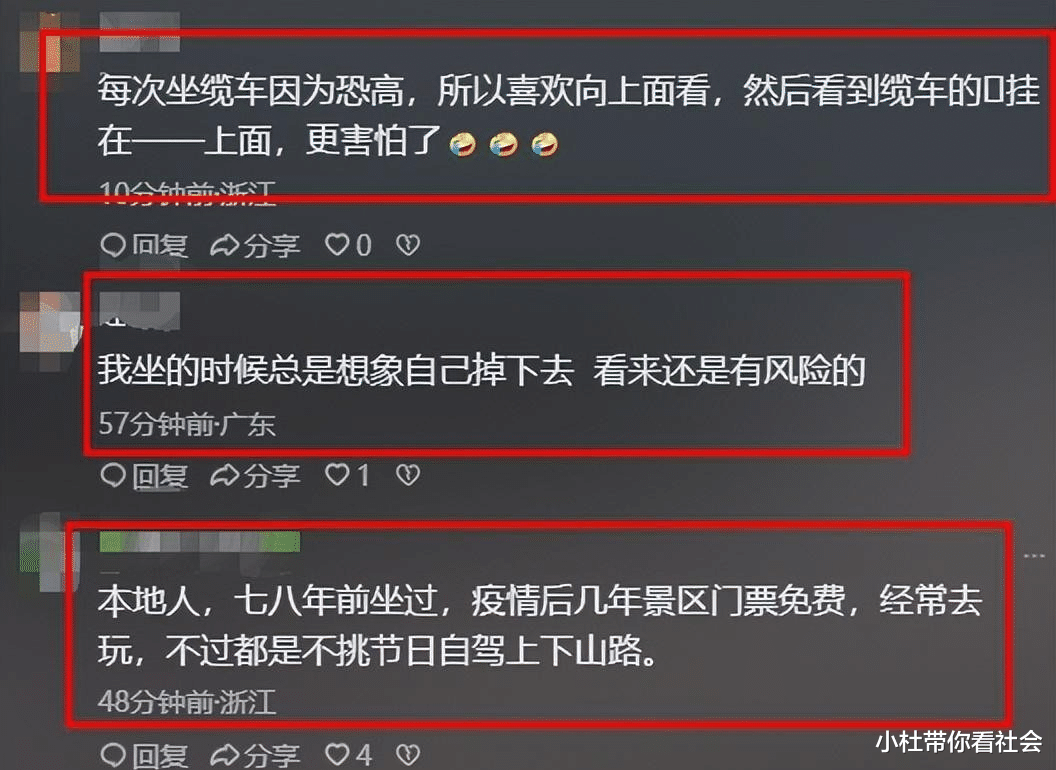 网友描述自己的坐缆车的经历,表示每次坐缆车都会担心掉下去。