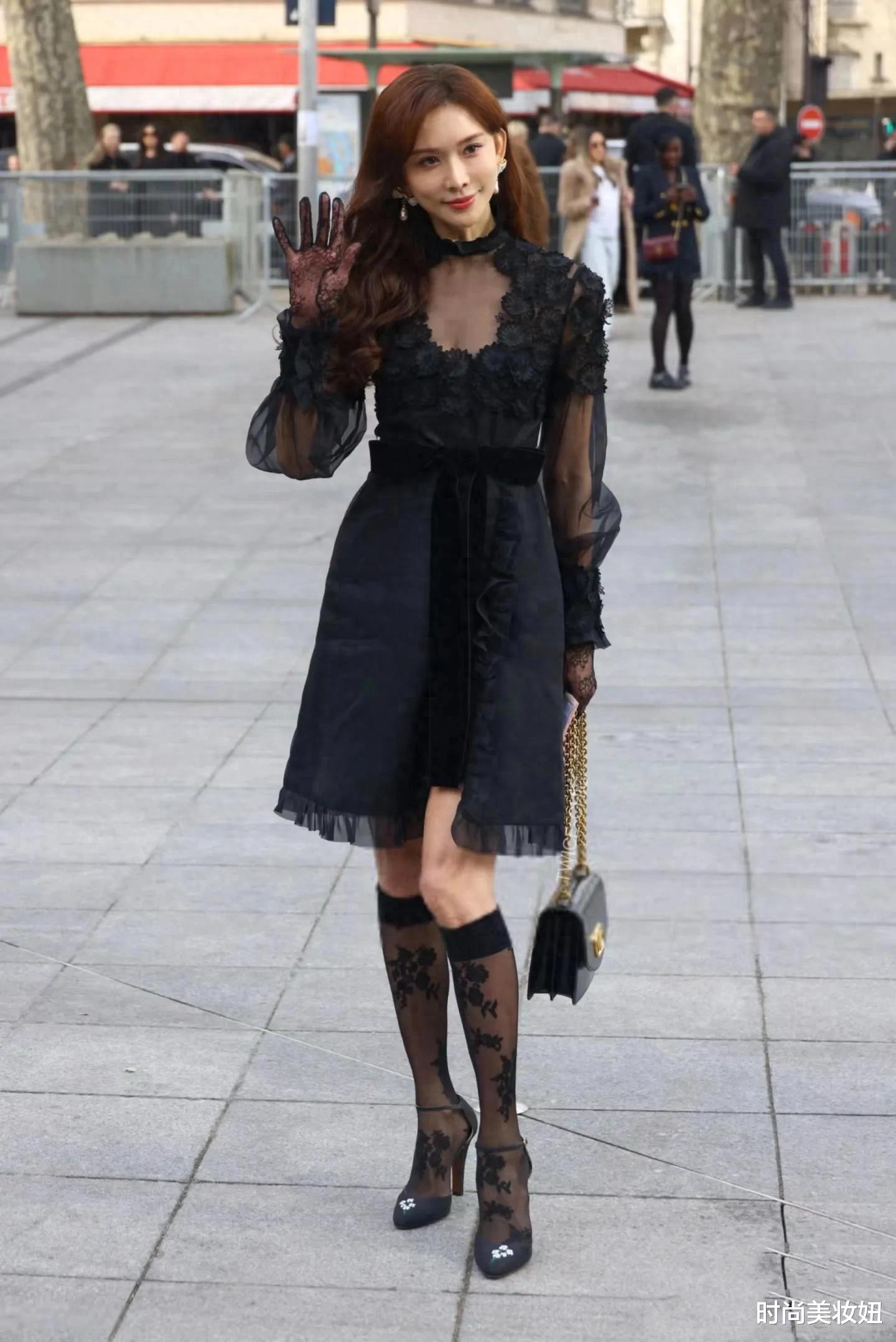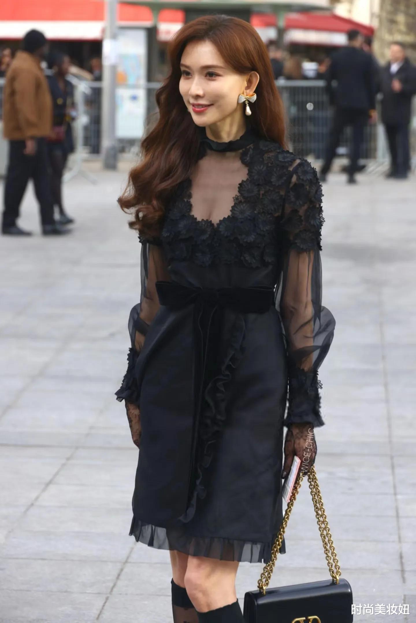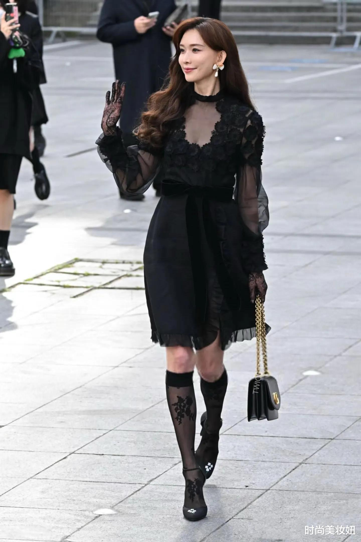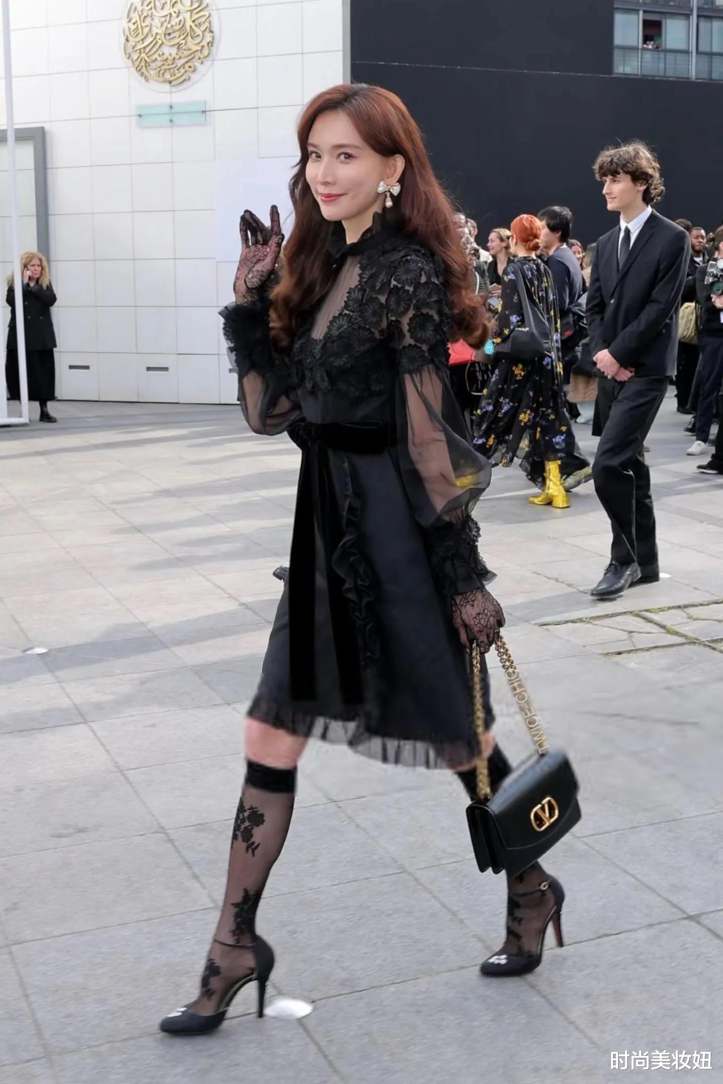 50岁林志玲巴黎惊艳亮相:黑色连衣裙+丝袜,美得像35岁!这套春季穿搭思路绝了!