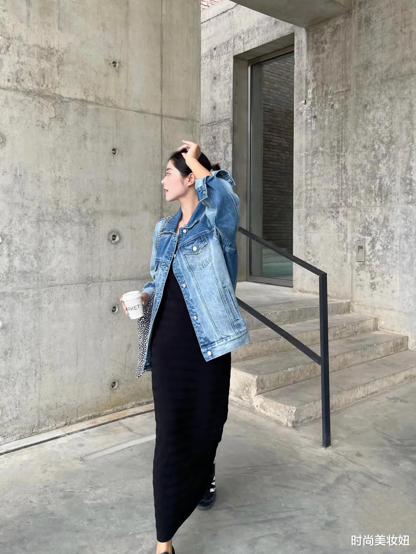 春季穿搭中,牛仔外套和小黑裙的组合无疑是经典又时髦的选择。牛仔外套的休闲随性为整体造型增添了一丝轻松感,而小黑裙的优雅与简约则提升了气质,两者混搭在一起,既不会过于正式,又不会显得太过随意,恰到好处地平衡了风格。可以选择一件短款的牛仔外套,搭配一条修身的小黑裙,既能拉长腿部线条,又能突出腰线,显高又显瘦。如果想要更有个性,可以选择带有刺绣、破洞或oversized设计的牛仔外套,增加造型的层次感。鞋子方面,搭配一双小白鞋或帆布鞋,整体风格会更加休闲活力;而如果换成一双短靴或尖头高跟鞋,则能瞬间提升气场,适合更多场合。配饰上,可以选择一些简约的金属饰品,比如细链条项链或耳环,为整体造型增添精致感。这样的搭配既实用又时髦,绝对是春季衣橱里不可或缺的穿搭公式!