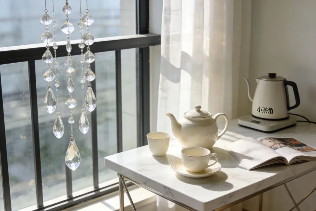 听觉营造:放一台小型白噪音机,雨声、森林声、流水声都是不错的选择,轻柔的背景音能舒缓神经;也可以在阳台装一串风铃,微风拂过的清脆声,能瞬间让人静下心来。注意别用大音量音响,过于嘈杂的声音反而会让人更焦虑。