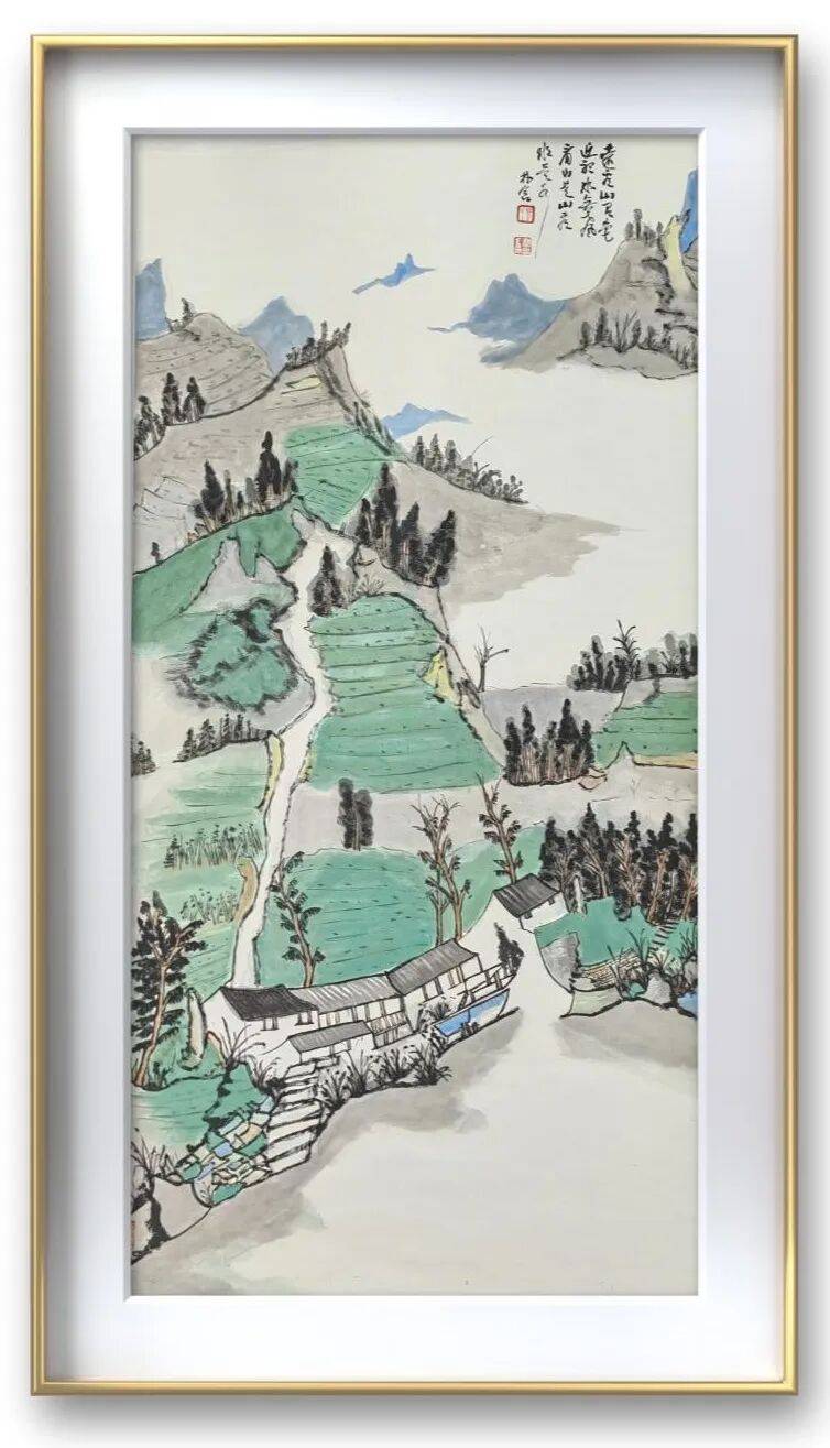 蔡林含钟情山水,根植于对传统文化的深耕细研,亦契合其内敛而开阔的艺术性情。历经多年理论积淀与笔墨实践,她的山水画已然构建出独属于自己的形式语言与审美体系,兼具宋元山水的气韵格局,落笔大气磅礴、雄浑厚重,以书入画、笔力苍劲,于笔墨间彰显个性,藏学养、见性情、露精神,意趣与风骨浑然相融。