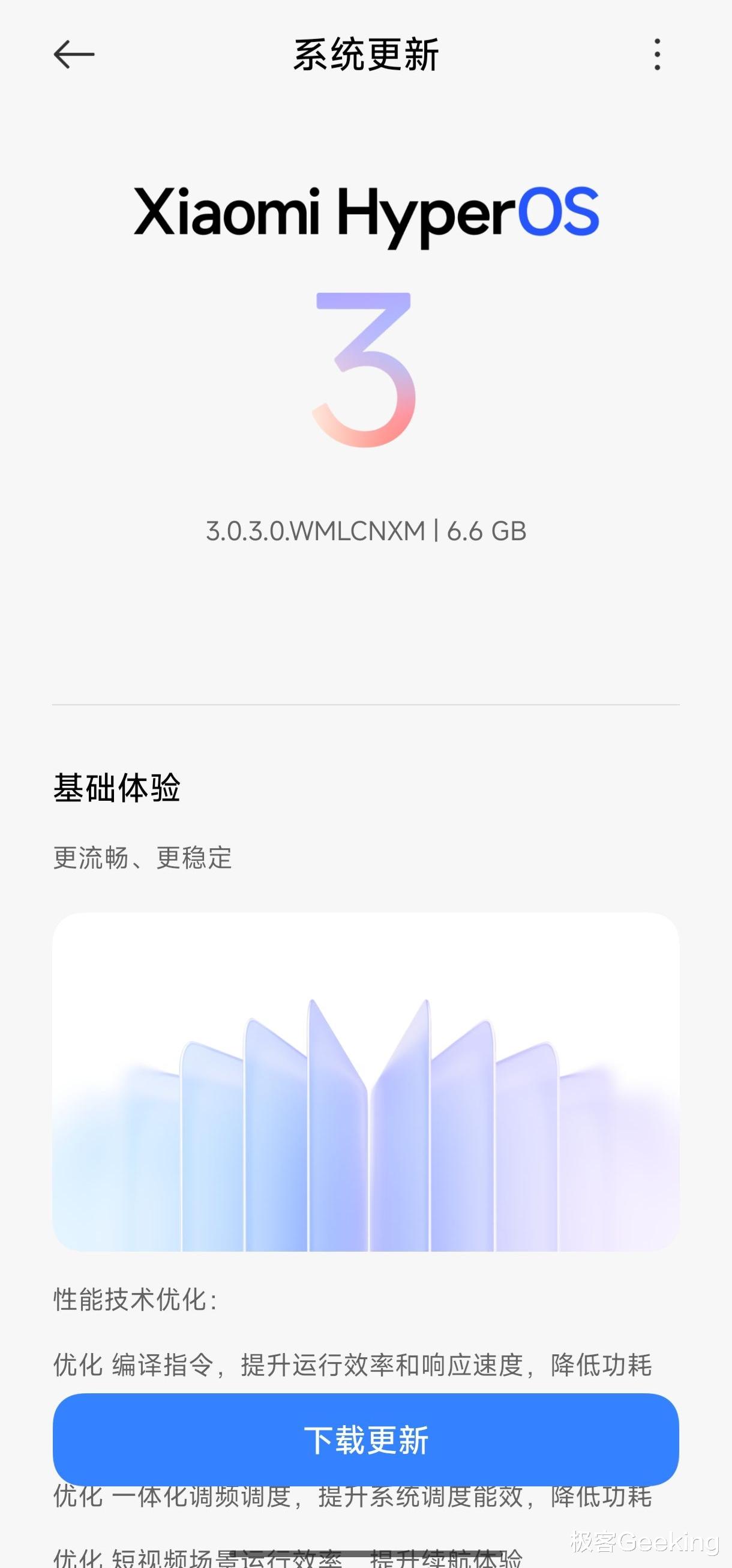 这一升级同样采用“灰度到全量”的逐步推送模式,因此上述手机并不是所有用户现在都能收到 OTA 更新。从已经 OTA 的机型来看,比如红米K60 至尊版,首个澎湃OS 3 正式版升级的版本号是 v3.0.3.0, OTA 升级包体积为 6.6GB。
