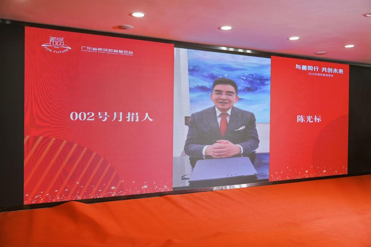 全国道德模范陈光标先生通过视频正式接受“希贤月捐宣传大使” 聘书,并作为基金会 “第002号月捐人” 发出倡议,号召更多人加入“细水长流”的爱心工程。