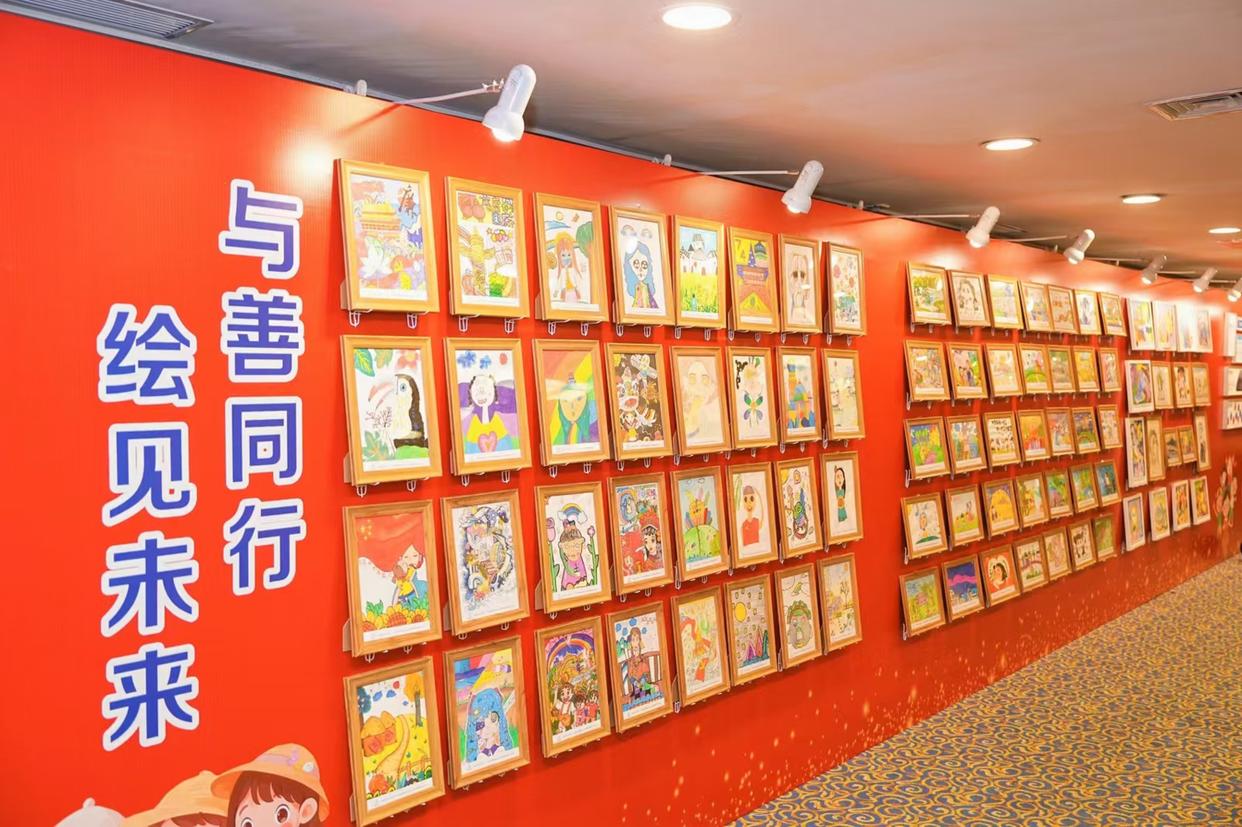 晚会现场特设乡村儿童画作展览区,80幅充满童真与梦想的画作构成一道温暖的风景线。在义卖环节,这些作品被志愿者精心放置于每张餐桌旁,形成“移动的微画廊”,让嘉宾在晚宴交流之余,能近距离感受孩子们笔下的世界,并随时扫码认捐,将艺术之美直接转化为爱的助力。