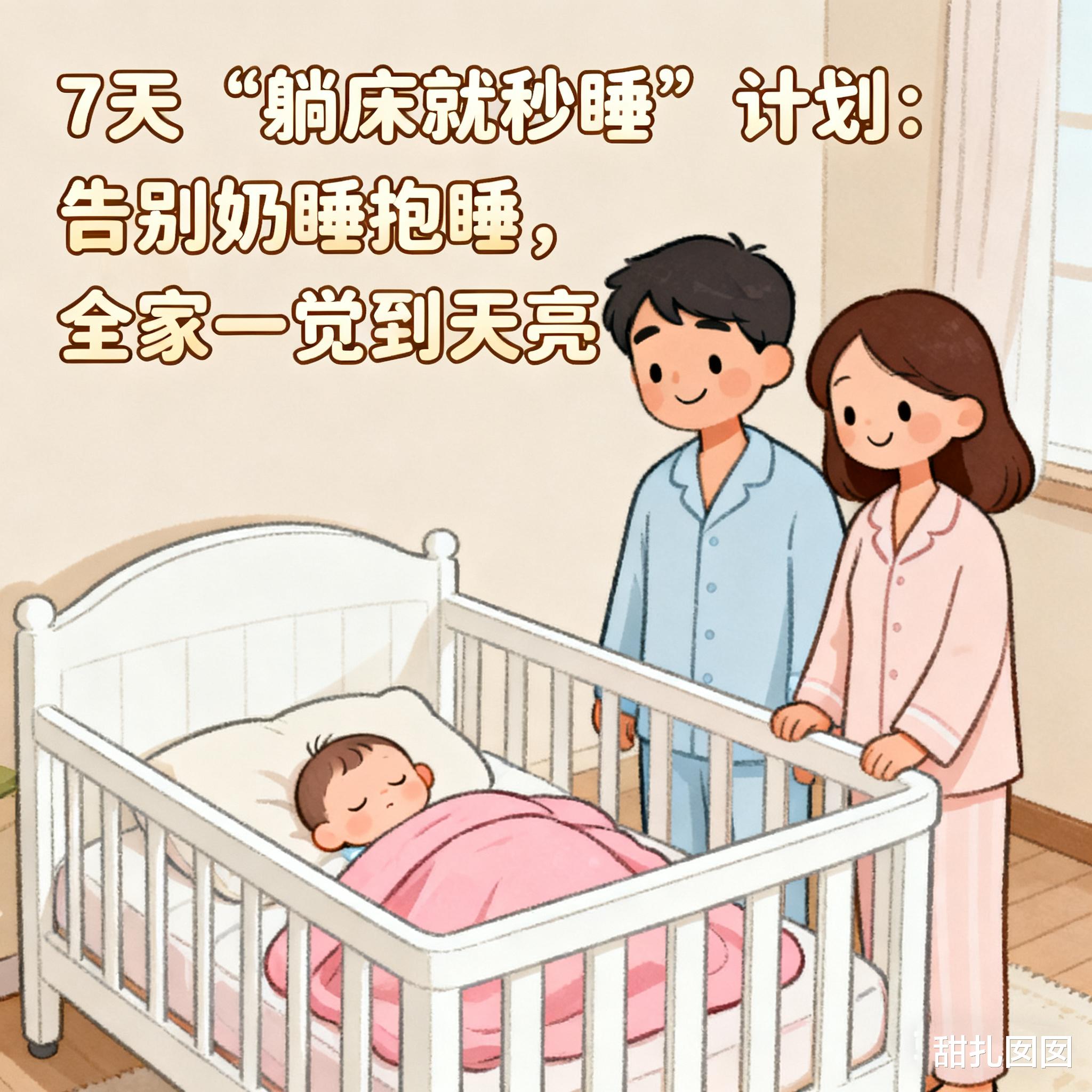 “夜里抱到手臂脱臼、奶到胸下垂,宝宝还是一放下就炸?”——别急着怀疑自己,你只是还没把“入睡”这件小事,拆成宝宝看得懂的步骤。自主入睡不是“哭免训练”,而是把“吃-抱-摇”的旧路径,温和地切换到“床-拍-哼”的新回路。下面这份7天路线图,集合了美国儿科学会“渐进式安抚”+国内1000+妈妈实测数据,0哭免、高成功率,坚持一周,多数宝宝能从“落地醒”升级为“放倒眠”。