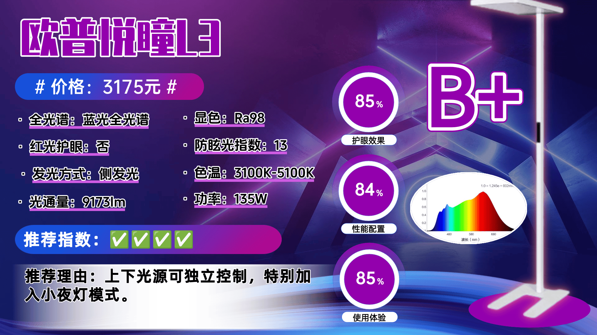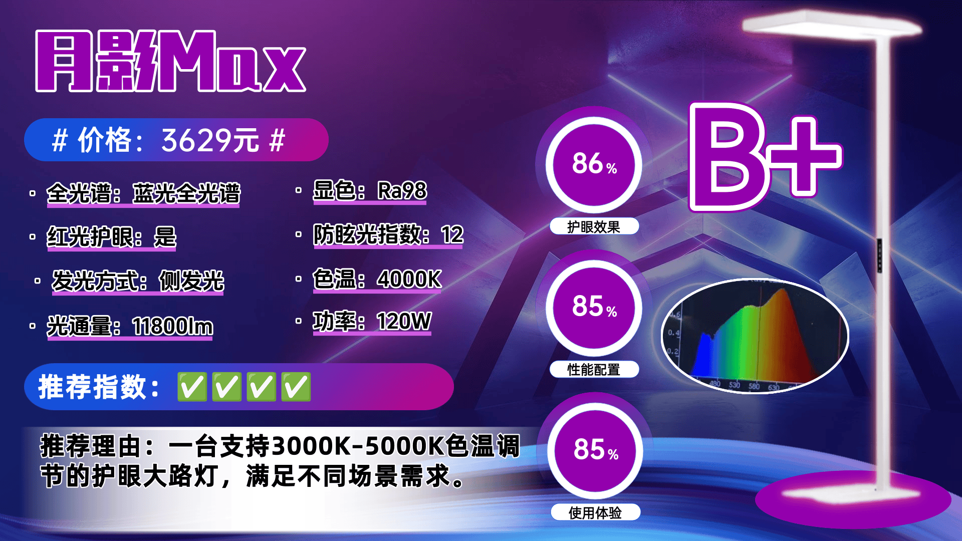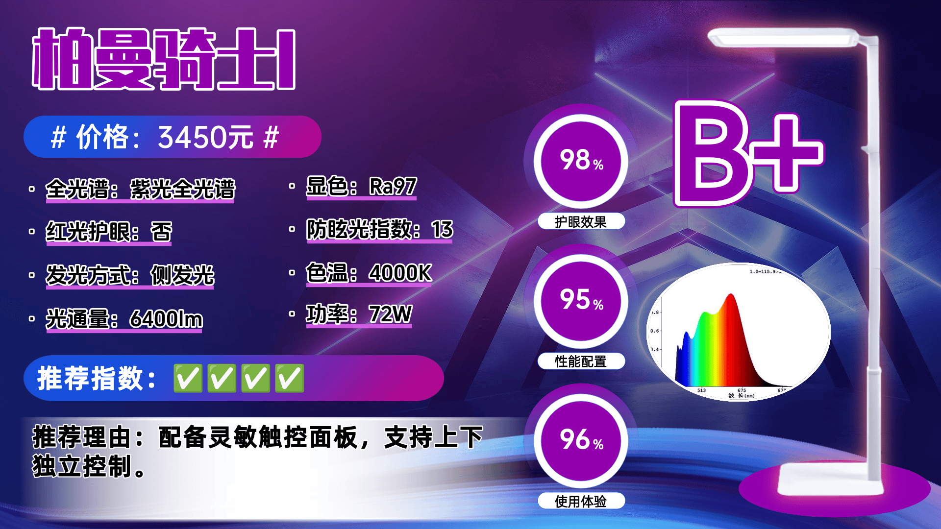 推荐理由:获得了众多宝妈们、眼科医生和专业媒体的好评,公认“中高端价位护眼性能最硬核的护眼大路灯”常年霸榜口碑销量冠军之位!