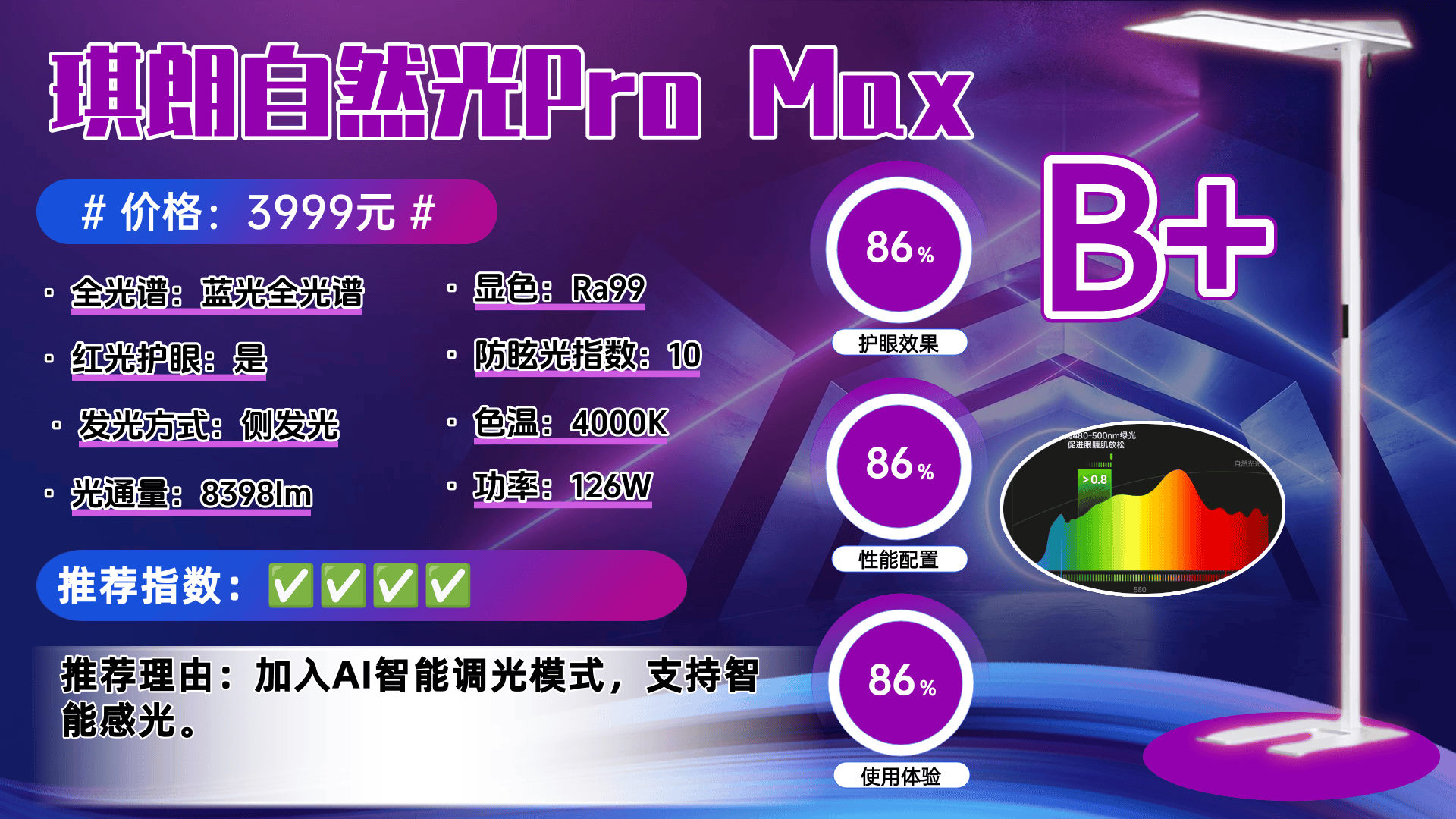 护眼大路灯第九名:琪朗自然光Pro Max