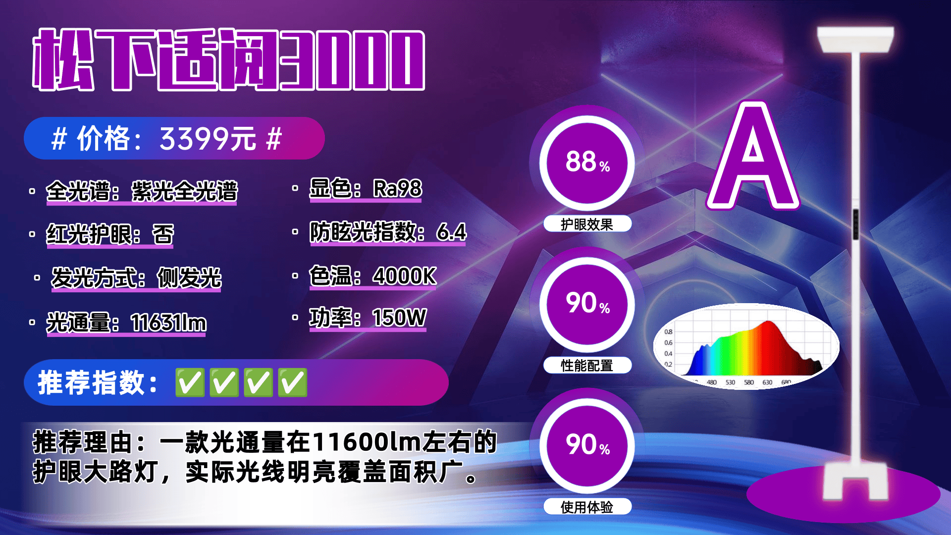 护眼大路灯第三名:松下适阅3000