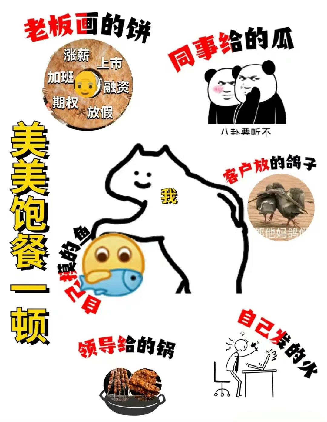 果然上班有一种饱腹文学,每一次看到老板画给我的饼的时候,我都觉得自己上班的时候不用吃饭