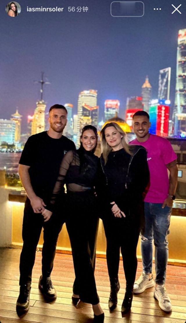 今日国安球员塞尔吉尼奥的妻子更新社媒,晒出赛后小两口和海港前锋莱昂纳多夫妻一同夜游上海的照片。