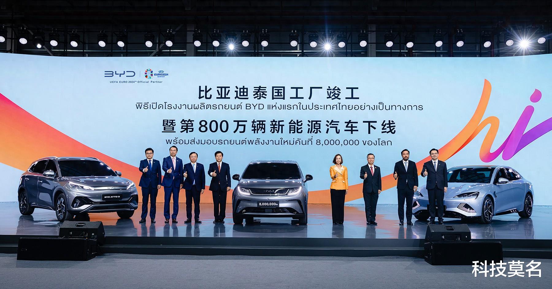 谁能想到,在2021年5月第100万辆新能源汽车下线至今,比亚迪只用了三年时间就将这个数字暴涨到800万辆,而在7月4日当天,比亚迪在泰国罗勇府举行了泰国工厂竣工暨第800万辆新能源汽车下线仪式,这也标志着比亚迪开启全球化新篇章。
