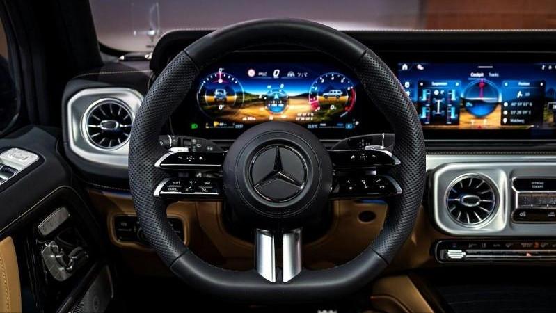 动力上,新款AMG G 63 依旧搭载4.0 升双涡轮增压V8 发动机,同时搭配48V 轻混系统,最大马力585匹,峰值扭矩850N·m,0-100km/h 加速仅需4.2 秒。值得一提的是,新车还可以选配新型Active Ride 主动式悬挂系统,可以进一步提升车轮在崎岖不平的路面上的衔接性以及在城市道路上的操控性。