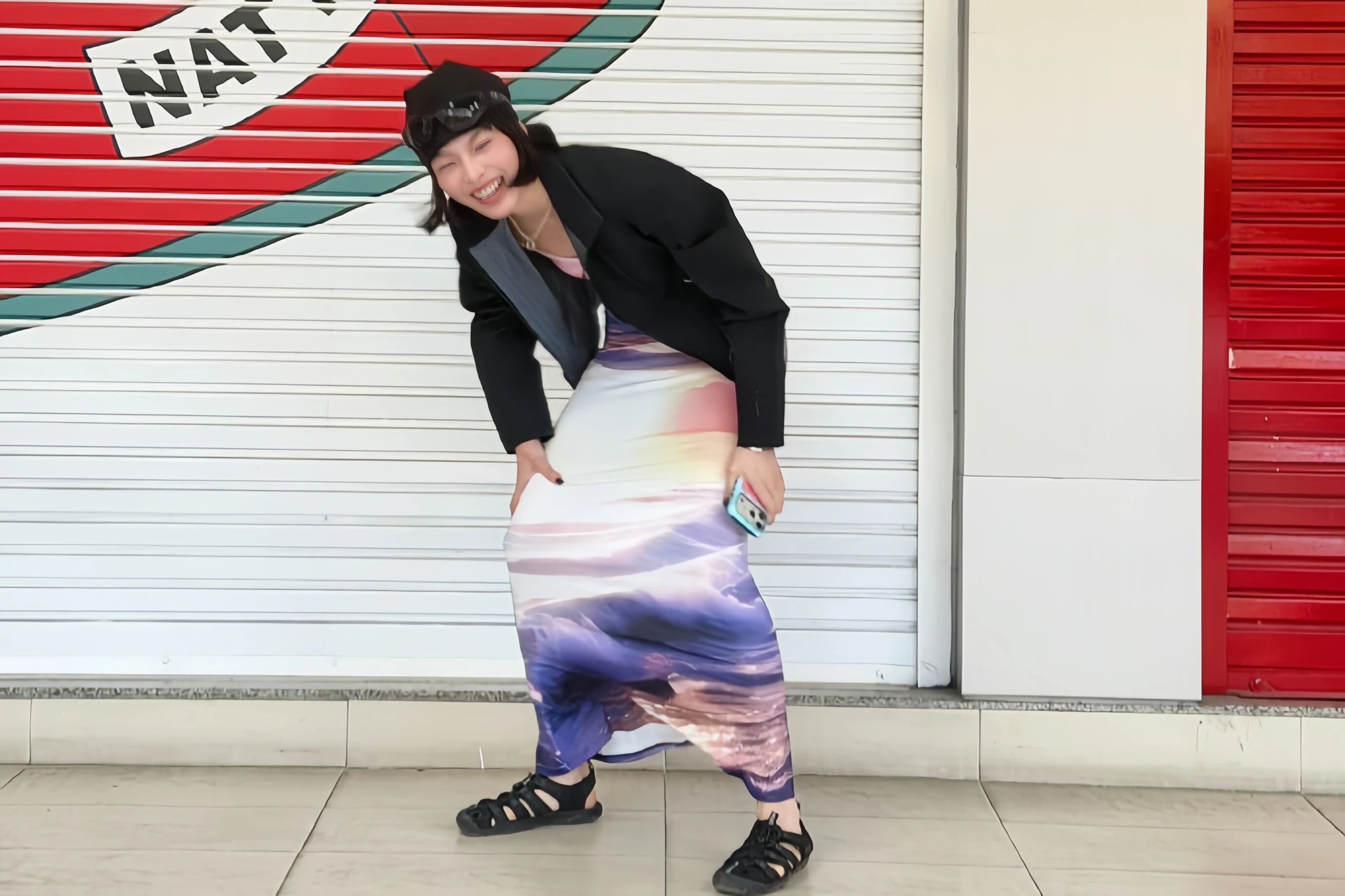 最后这张她笑得眼睛都弯了,身体歪得快要站不住,却把 “我开心最重要” 的松弛感拉满。所以其实性感不是完美无缺,是像她这样,带着点疯癫,带着点随性,在镜头前做最真实的自己。