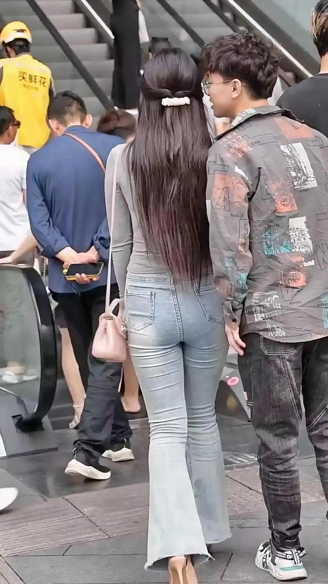 张天爱跟素人合影,胯真的好宽,大宅院似的