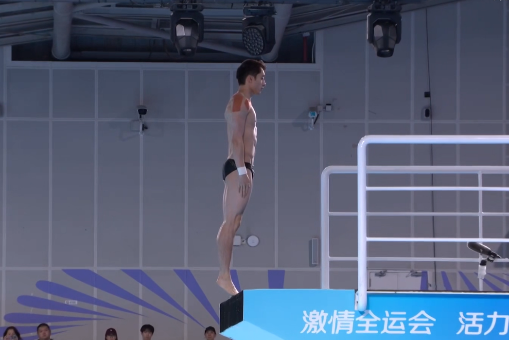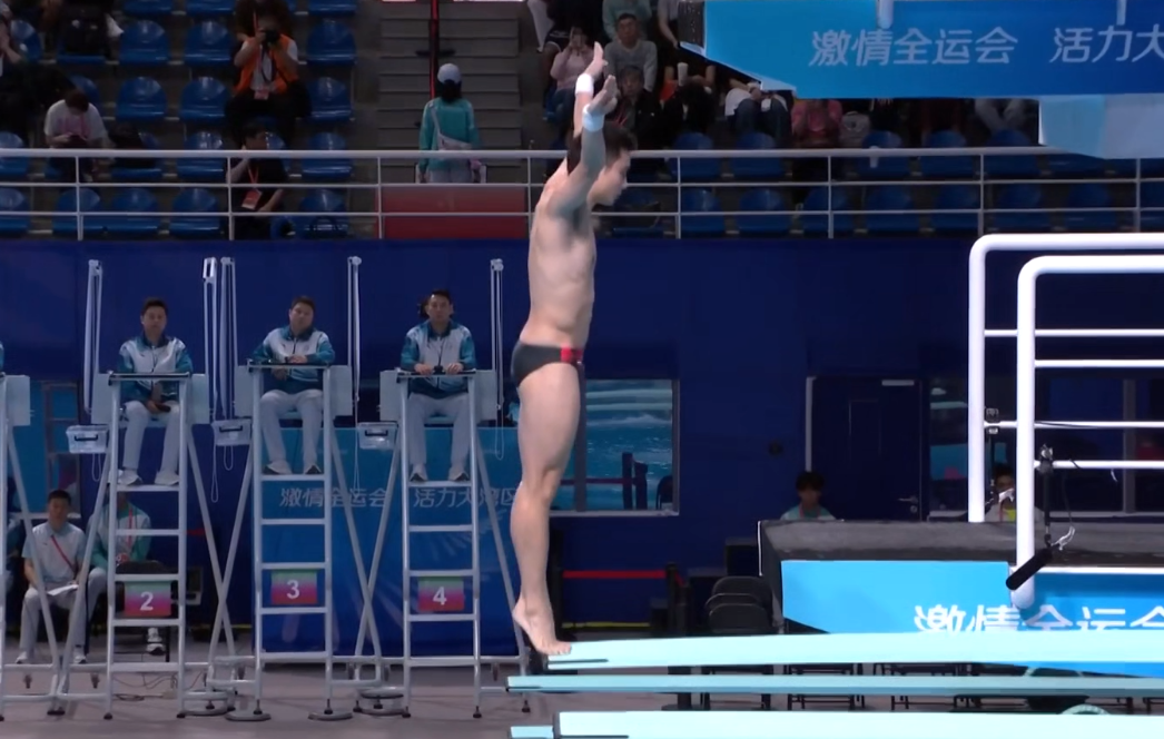 崔彰喻保持稳定状态,6245D动作拿到79.20分,累积393.15分升至第一。此外,广东选手郑钧之109C拿到83.25分单跳第一,累积386.15分升至第三名。