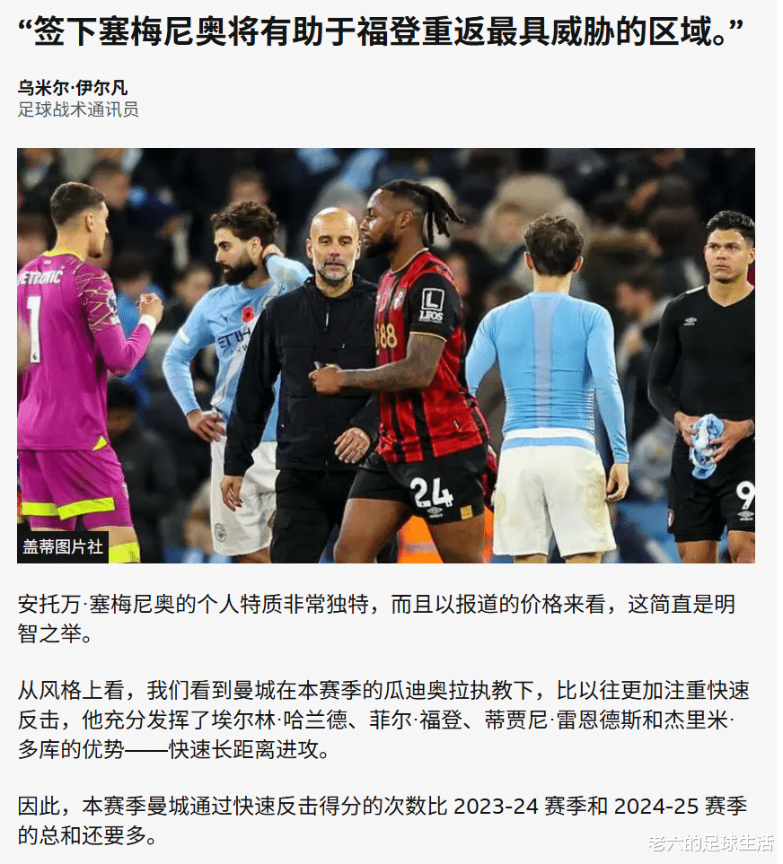 冬窗他们即将签下伯恩茅斯的核心锋线塞梅尼奥,这名球员是目前英超出场时间超过2000分钟射门以及射正次数最多的球员,他的加盟能够解放福登。