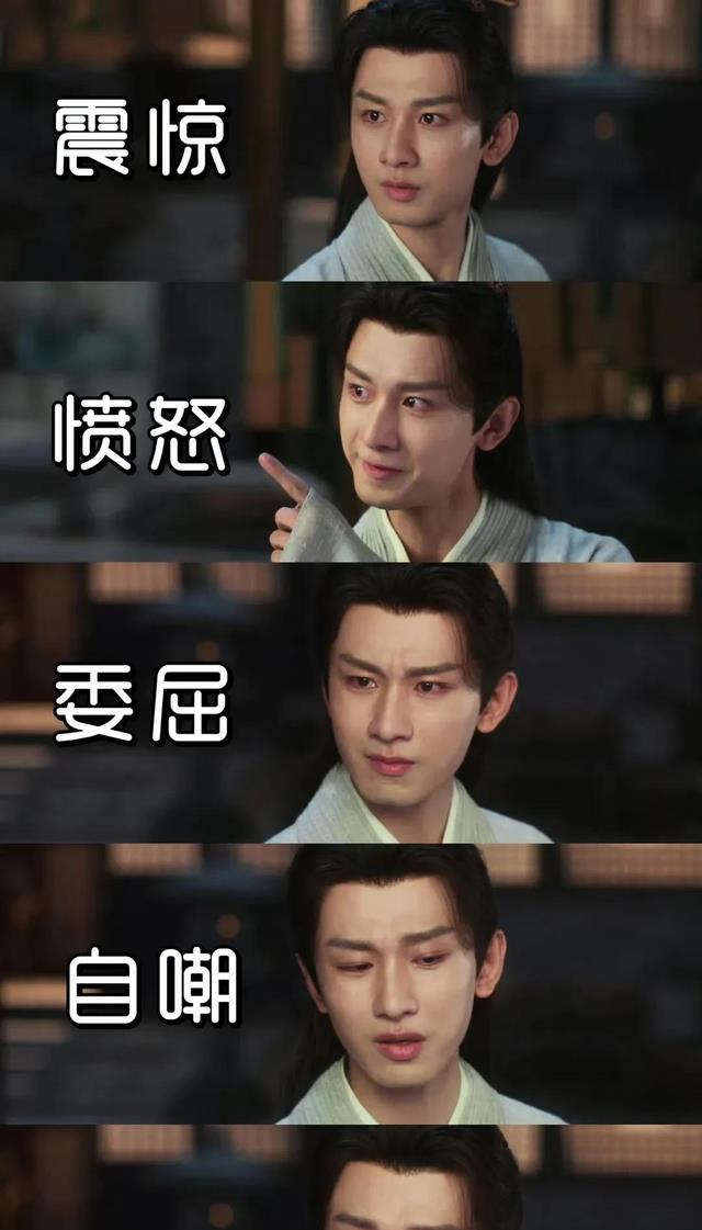 看到眼前这个寻找十年的师兄竟是陷害自己之人,他的情感层层递进,震惊、愤怒、委屈、自嘲、破碎落泪,每一个表情都恰到好处,情绪细节处理非常细腻,堪称“教科书式”的演技。