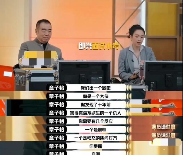 节目里,作为导师的章子怡即兴出题:你是一个大侠,发现十年前害得你痛不欲生的仇人,要求表现出震惊、愤怒质问对方、委屈自嘲、最后破碎落泪五种情绪变化。