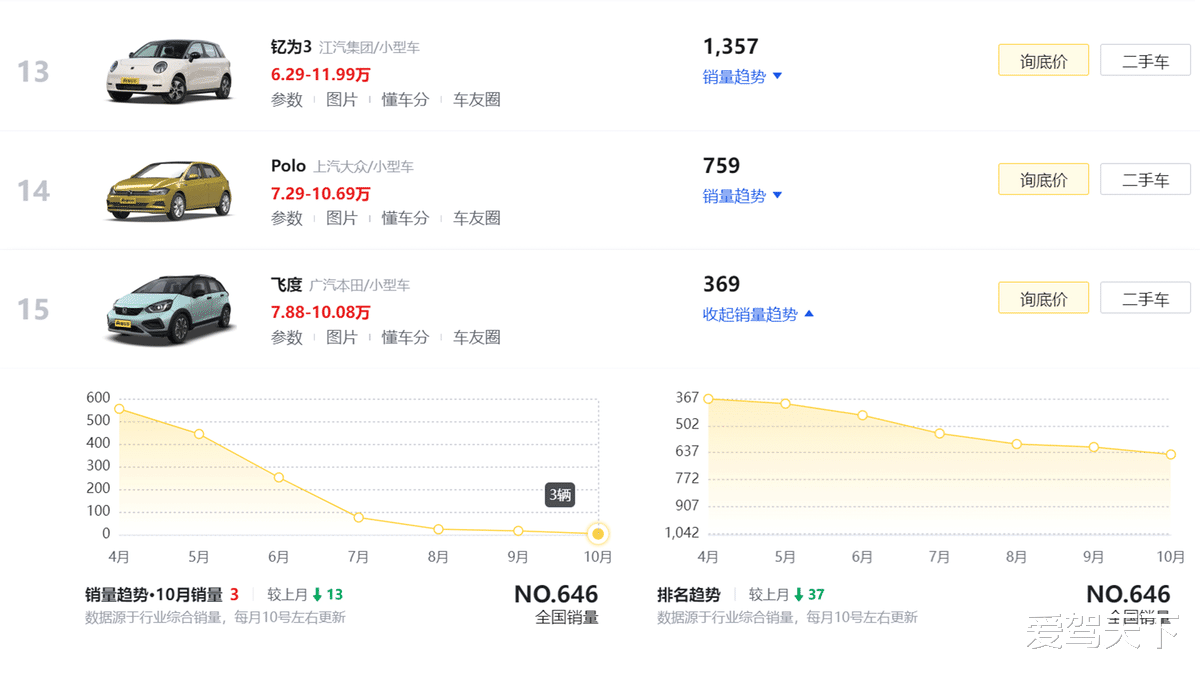 然而,时过境迁,曾经辉煌的飞度如今却风光不再。某平台销量榜单显示,飞度近半年的销量仅为369辆,10月份的销量仅3辆,11月的销量更是直接挂零,这与曾经月销破万的辉煌成绩相比,简直是天壤之别。这样的数据让人不禁感叹,曾经那个“50万以内最好的车”,如今怎么就混成了这样?
