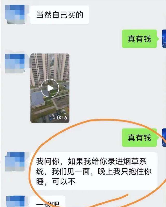 看女子羡慕他有钱,孙某更大胆了,直接对女子说:“给你录进烟草系统,我们见一面,晚上我只抱住你睡,可以不?”