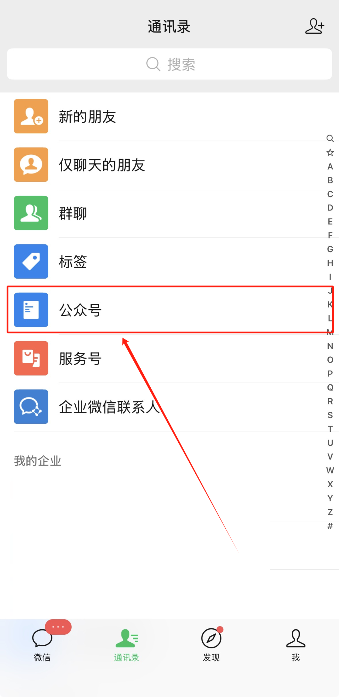 点击界面中的“公众号”选项。