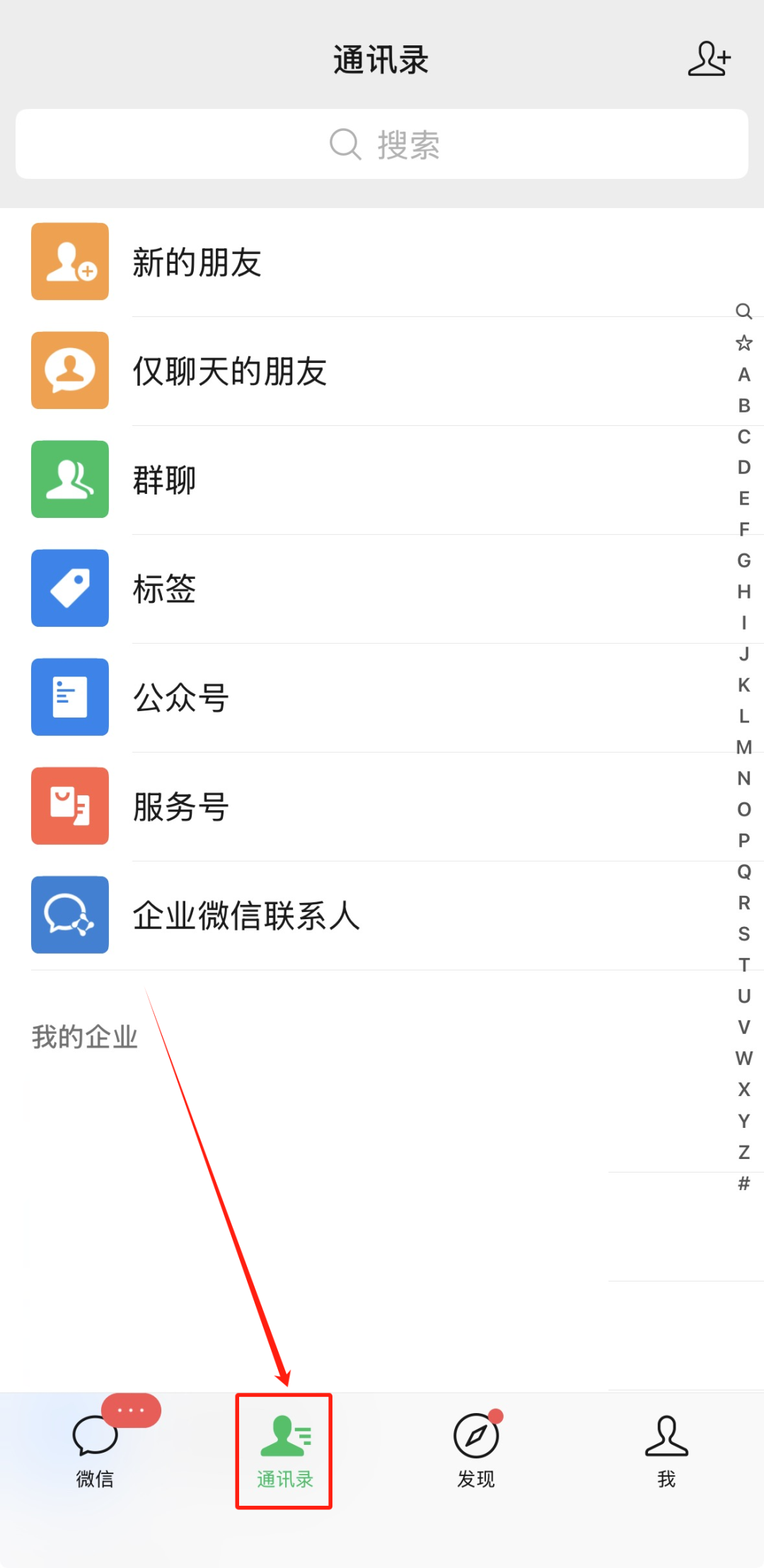 打开微信App,点击界面底部的“通讯录”选项。