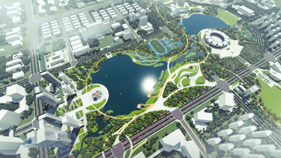 群英湖公园总用地面积约150公顷,南北绵延逾两公里,将打造成一座集智慧体验、生态涵养、文体活力与滨水休闲于一体的大型城市中央公园,成为区域“中央生态轴心,高品开放绿核”。