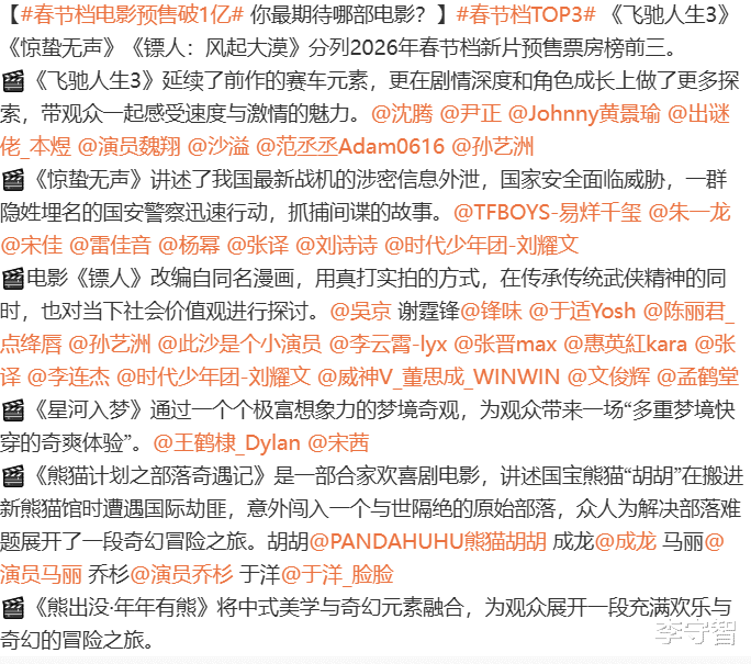 春节档开售!三强《惊蛰无声》《飞驰人生》《镖人》都靠明星吸睛