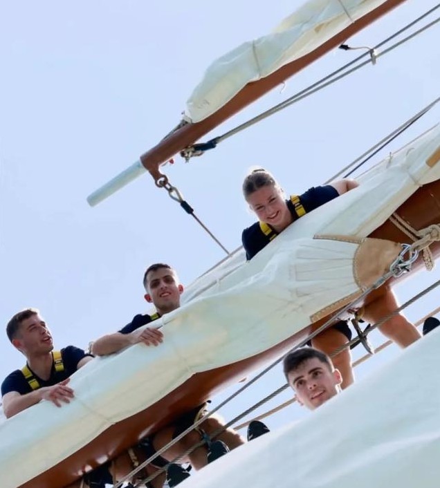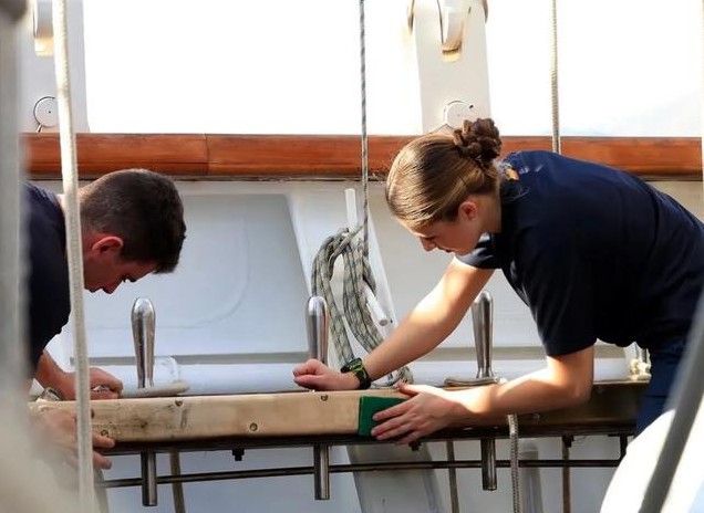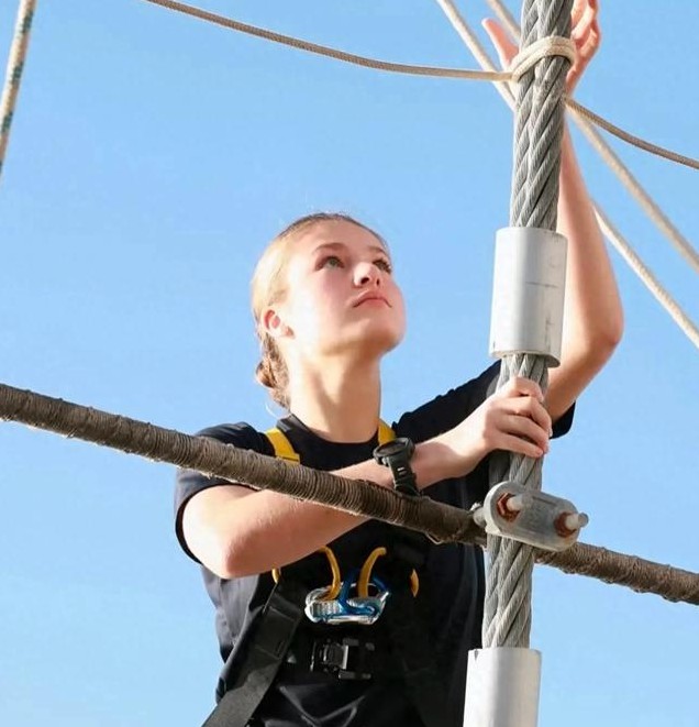 在桅杆上的诺拉,不晕船不恐高,看样子和同伴们训练的时光还挺开心,这模样都要起飞了。