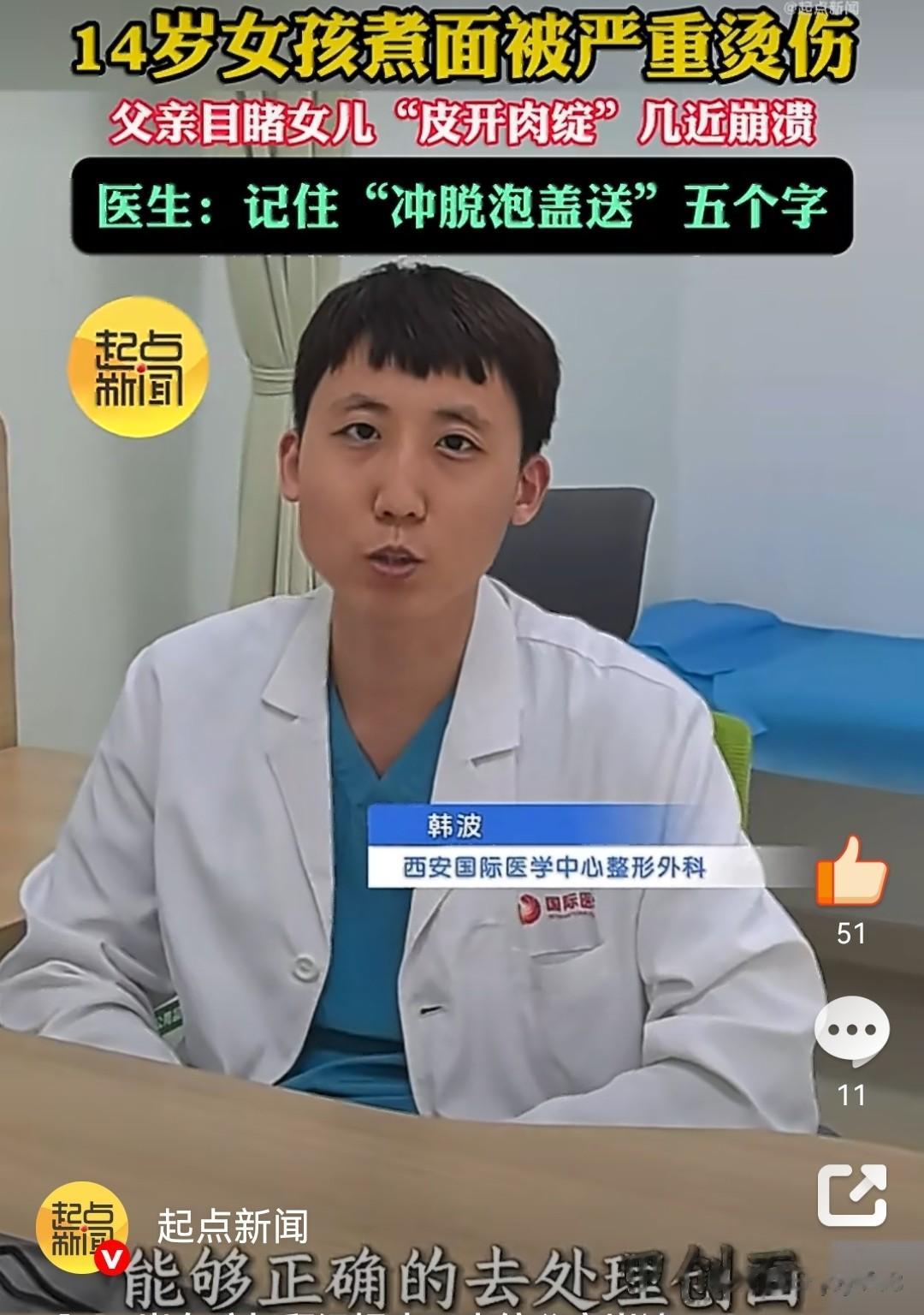 父爱虽本能,急救需科学在医院,医生虽然通过紧急降温、清创,尽力为孩子保住了受损的皮肤,但诊断结果依然严峻:女孩的烫伤部位包括浅二度和深二度,未来将面临长期的疤痕修复和抗增生治疗。对于一个14岁的花季少女来说,这意味着身体和心理上漫长的双重考验。