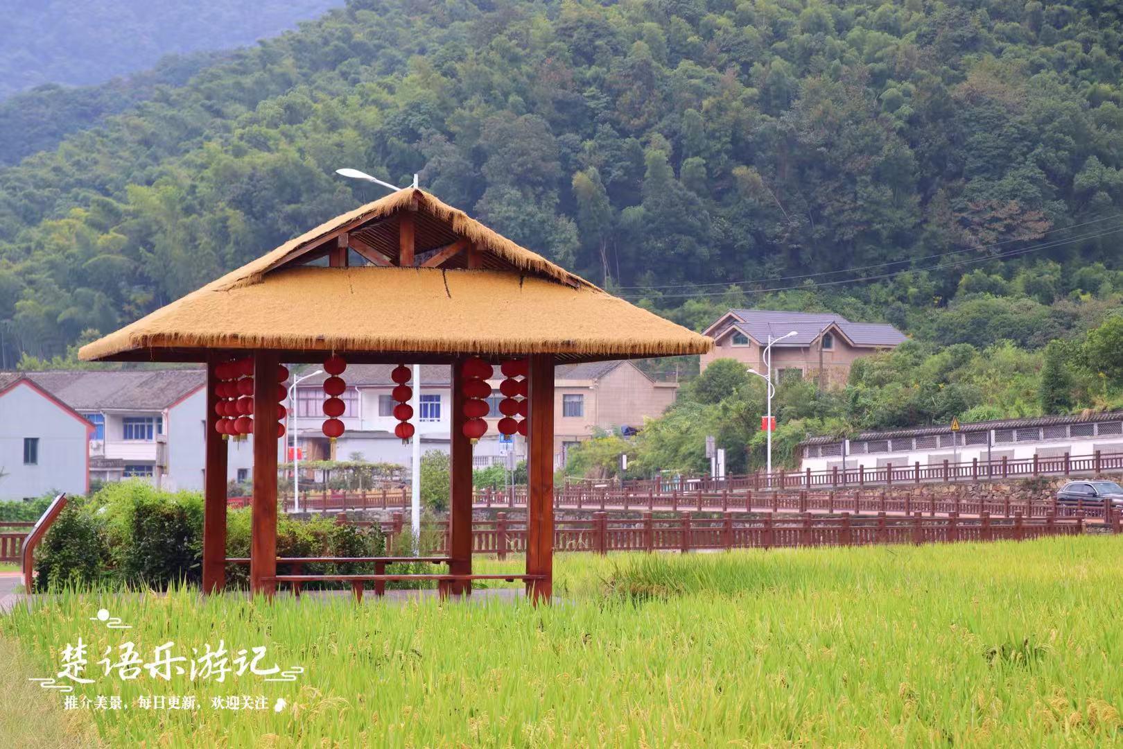 村子南面的多彩田园这个时候以水稻为主,稻子乍黄还绿,稻田四周有民宿山庄、田园小筑和绿道凉亭,既适合小坐品茶,又适合欣赏风景,还适合骑行徒步。