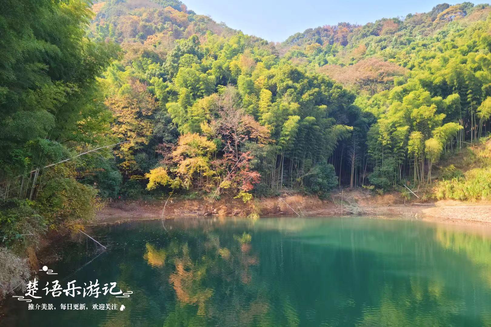 大顶岙山塘扼守小盘山古道的入口,面积不大但是景色尚好,清幽宁静。小盘山古道藏在竹林之中,但两旁都是枫香和金钱松等高树,其中金钱松最多,冬季一片金黄,让这里成了宁波又一条黄金古道。