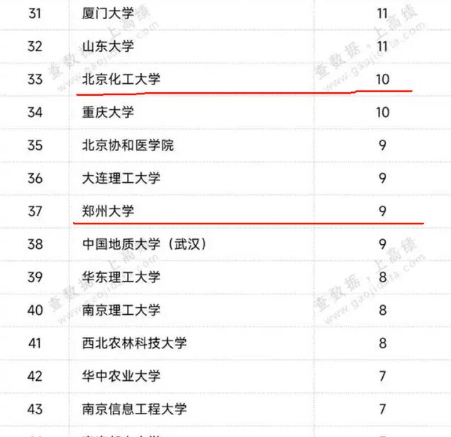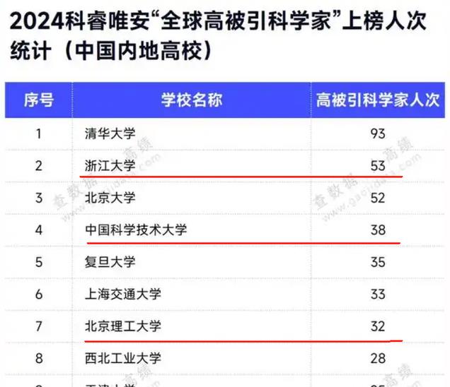 有20人以上高被引科学家的高校分别是中科大38人,复旦35人,上交大33人、北理工32人、西工大28人,天大25人,中农大25人、武大与苏大23人,华工与华科21人,东南、南大与湖大都是20人。