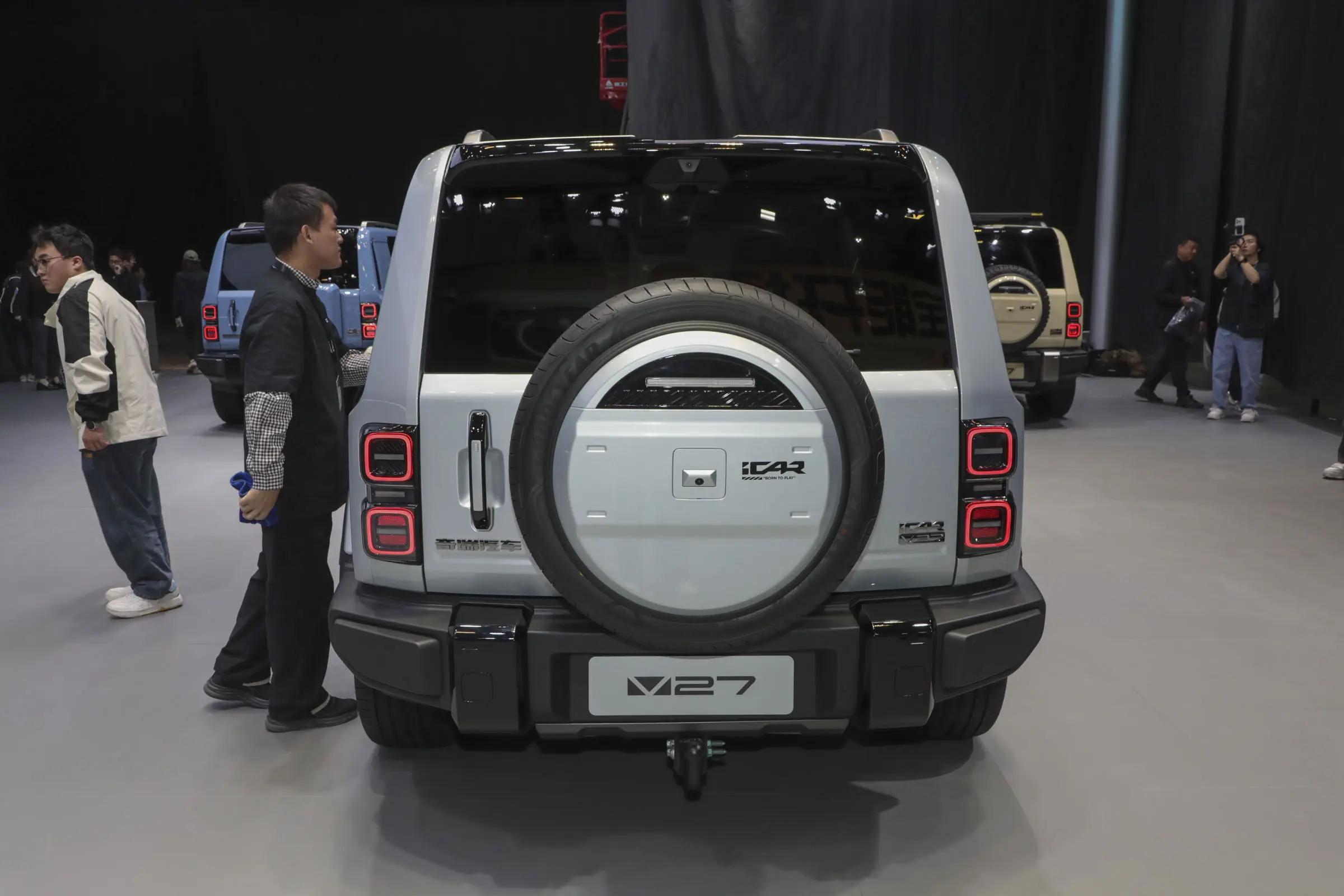 而眼瞅着钛7的火爆,各家车企也加快了对标车型的研发,比如吉利战舰以及今天咱们要说的这台奇瑞iCAR V27,该车在此前已经开启了盲订,除了全系标配有高通8295P芯片和宁德时代电池外,从实车图来看,iCAR V27还罕见的配备了全尺寸备胎。那么,接下来咱们就来详细的聊聊这台车,看即将上市的它(3月13日)能否与方程豹钛7掰手腕呢?