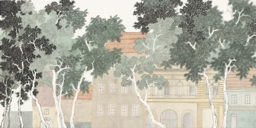 树枝的生机与灰白建筑的冷静,在互诉心事。