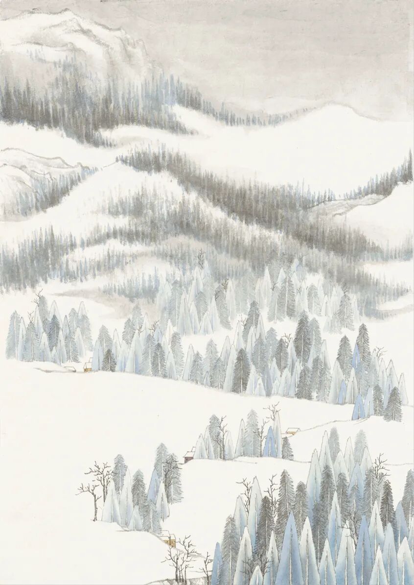 当暮色渐浓,白雪与苍茫融为一体,