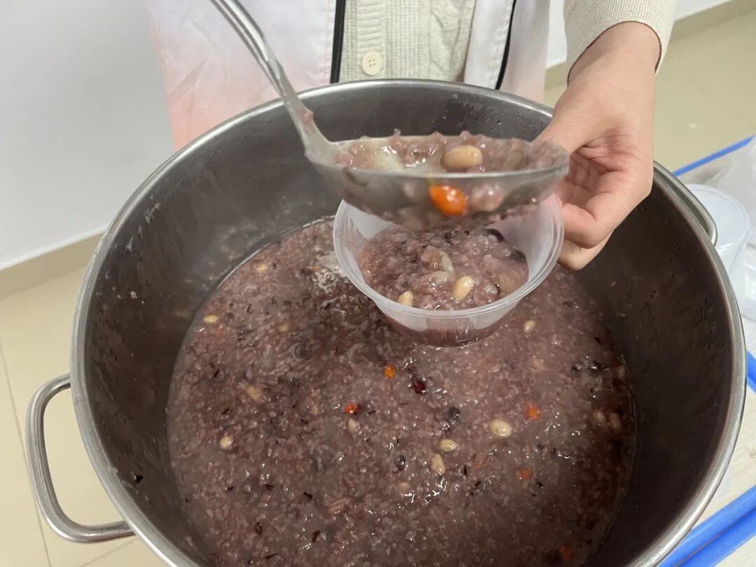 工作人员志愿者们小心翼翼地将熬制好的腊八粥盛到碗里,一碗碗热气腾腾、软糯香甜的腊八粥被依次送到每位老人手中。老人们手捧温热的粥碗,小口品尝着,香甜的滋味在舌尖蔓延,温暖的感觉从手心传递到心底。“这碗粥熬得真好,喝下去浑身都暖和了!”“这粥熬得真糯,甜而不腻,太好喝了!”朴实的话语里,满是幸福与感动。
