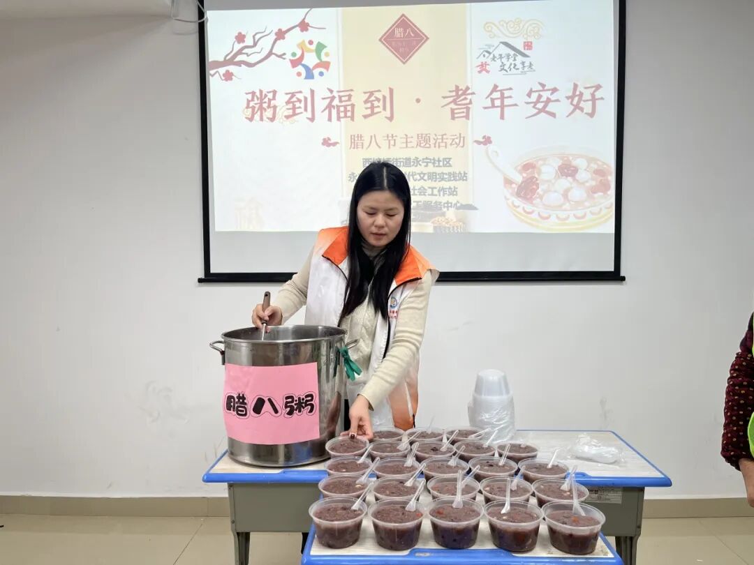 “过了腊八就是年,一碗福粥暖寒冬”。为传承中华优秀传统文化,筑牢老年群体反诈防线,让辖区老人们在寒冬中感受温情关怀,2026年1月20日下午,西塘桥街道永宁社区联合街道社会工作站、民联社工,在永宁社区党群微客厅展了“粥到福到·耆年安好——反诈安全宣讲暨腊八节主题活动”,共计参与50余人次。