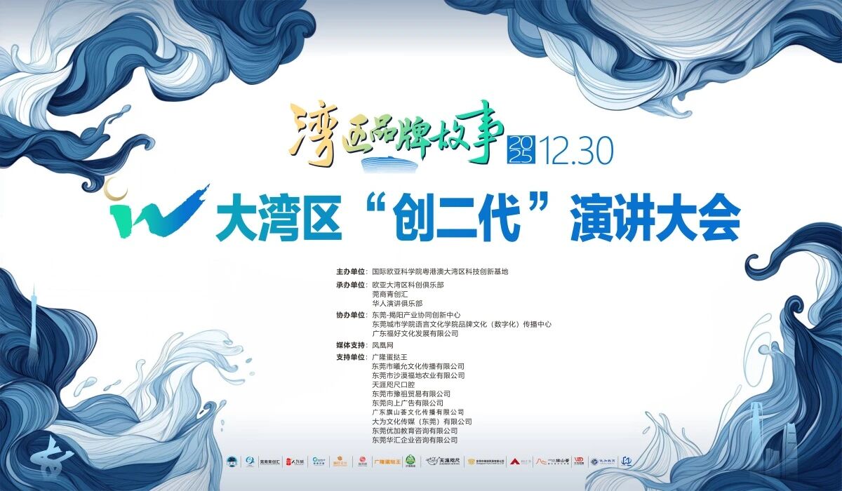 12月30日,第二届大湾区“创二代”跨年演讲大会在东莞星海珄珖剧院隆重举行。本次大会由国际欧亚科学院粤港澳大湾区科技创新基地主办,欧亚大湾区科创俱乐部、莞商青创汇、华人演讲俱乐部联合承办,以“湾区品牌故事”为核心主题,经过3个月海选与万人点赞脱颖而出的12位演讲嘉宾,通过真挚分享与深度表达,传递品牌传承中的坚守与创新,为大湾区高质量发展注入青年动能。活动全程亮点纷呈,线上线下反响热烈,成为跨年夜里展现湾区青年精神风貌的标志性事件。
