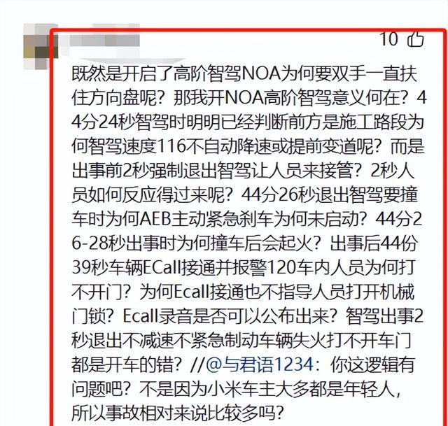 但是对于小米的回应大家并不买账,在这一起事故中有非常重要的几个点。