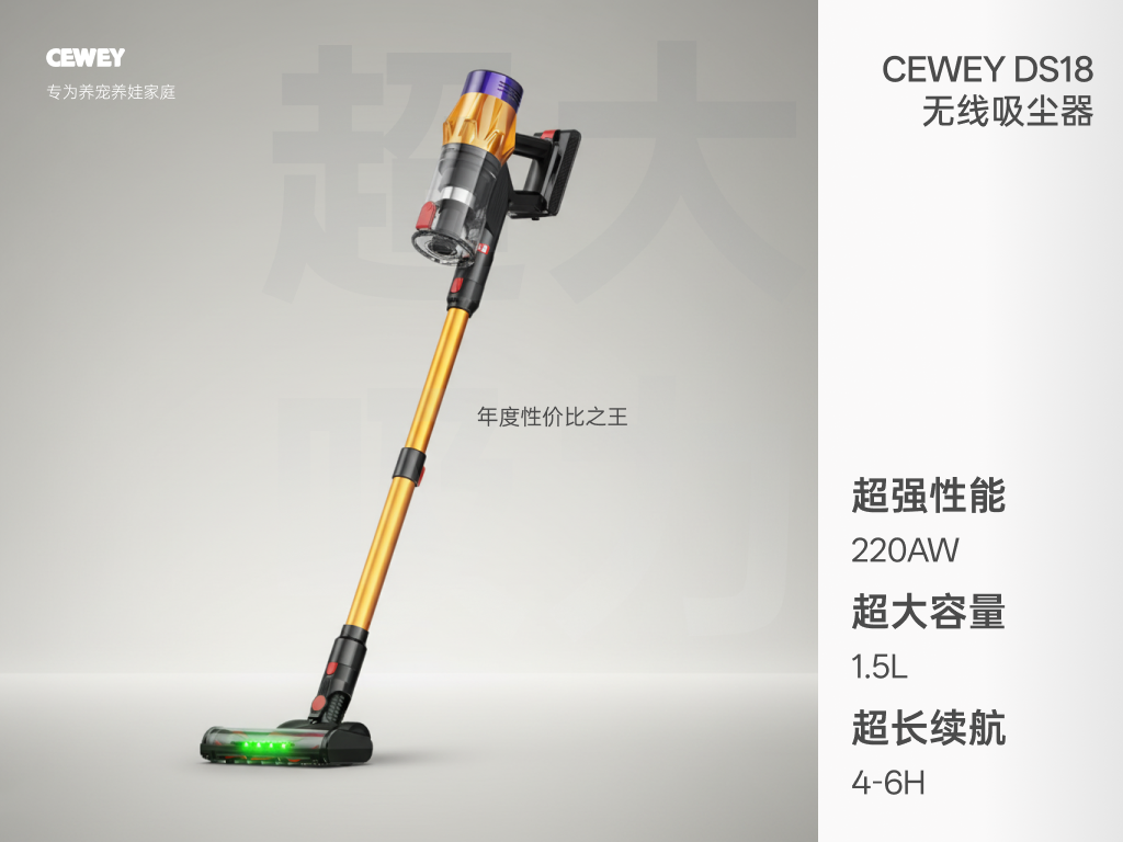 1. 手持吸尘器内卷之王:CEWEY DS18