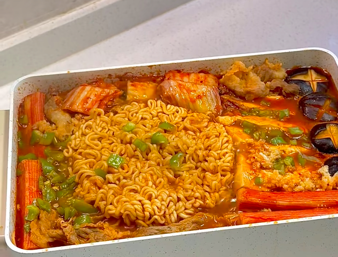 有趣的是,这道“穷人料理”如今成了韩国国民美食。家庭版部队锅更添温情:妈妈会偷偷在孩子碗里多藏片午餐肉,爸爸负责把控火候防止煮糊,全家人抢着挑锅里的年糕——一锅煮的不仅是食物,更是热腾腾的烟火气。