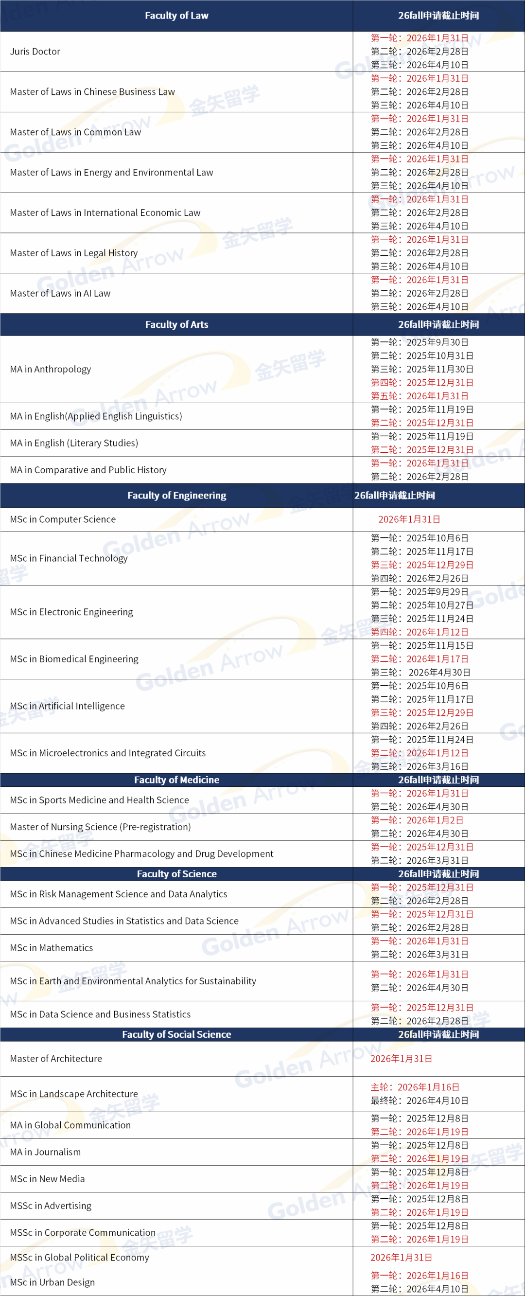 Master of Education Master of Social Sciences (MSocSc) in Psychology26fall目前官网公布的申请截止日期为2025年12月31日