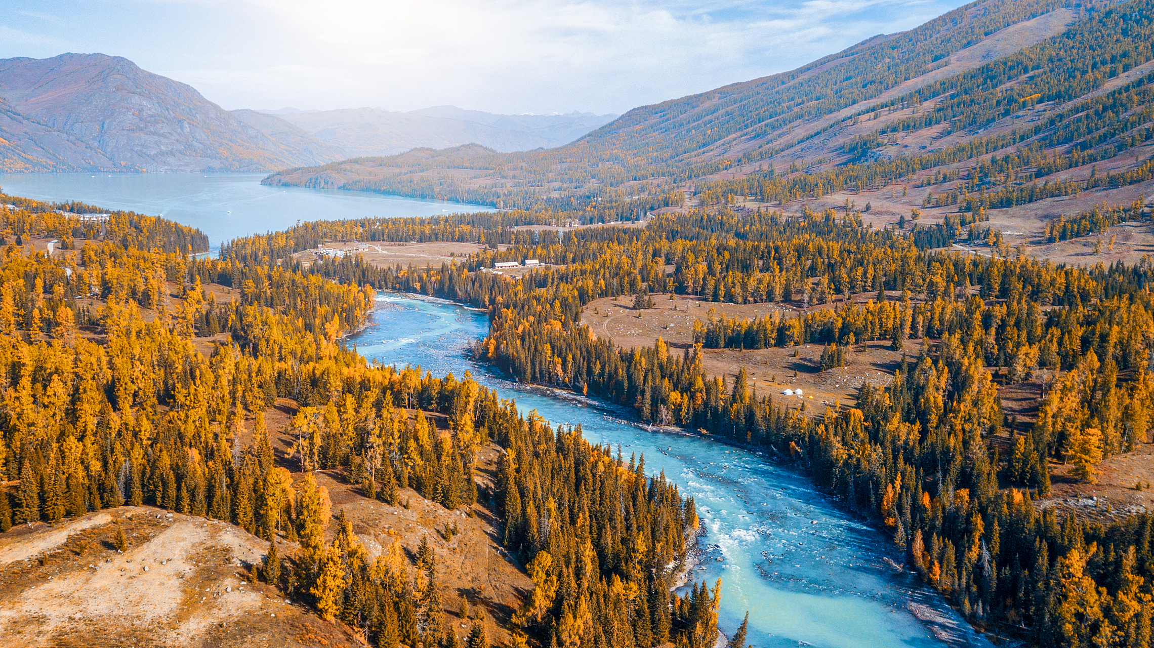 喀纳斯,位于新疆北部,以湖泊、森林和雪山而闻名。湖水碧绿如玉,四周环绕着茂密的森林和巍峨的雪山。秋季,喀纳斯的景色尤为迷人,金黄的树叶与碧水相映,构成了一幅动人的画卷,令人不禁驻足欣赏。