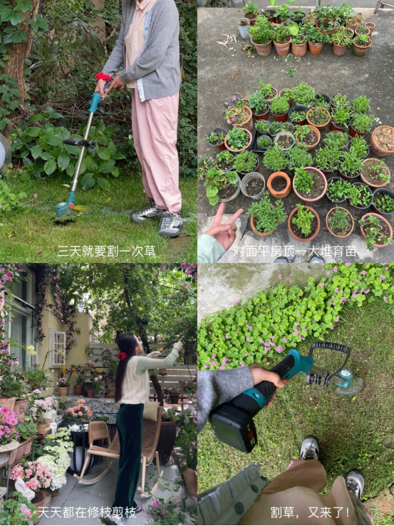 比如来自安徽的这个小女子@家有恶犬小白,才30多岁就因“老破小花园”圈粉无数,提前过上了退休生活。