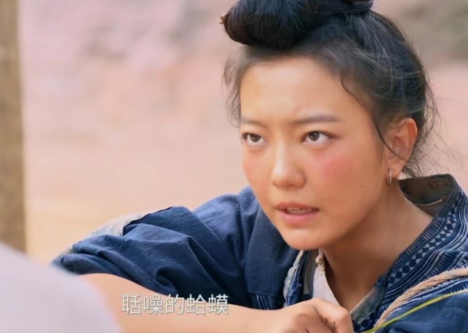 周美君的扮相堪称 “抠书式还原”:小麦色皮肤、两颊红斑,一看就是经受过烈日暴晒;长发扎顶,民族风穿着打扮,充满地域特色。
