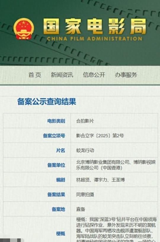 与此同时,国家电影局官网显示,《蛟龙行动》已重新备案,预示着这部电影将会以崭新的面貌回归银幕,继续为中国电影市场的繁荣贡献力量。