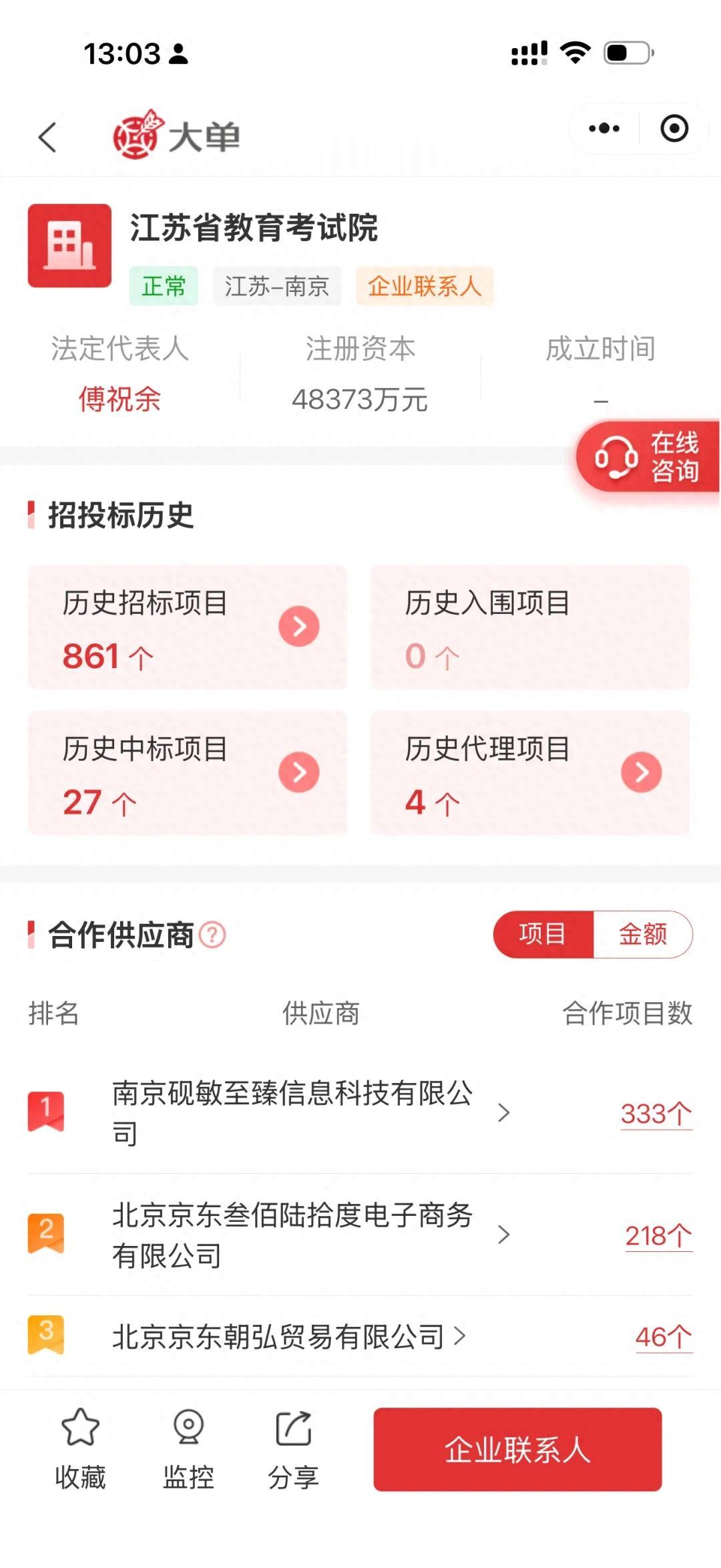 2025 年 11 月 21 日,江苏省教育考试院发布《江苏省国家教育考试标准化考点专网技术服务》采购公告,预算 765 万元。