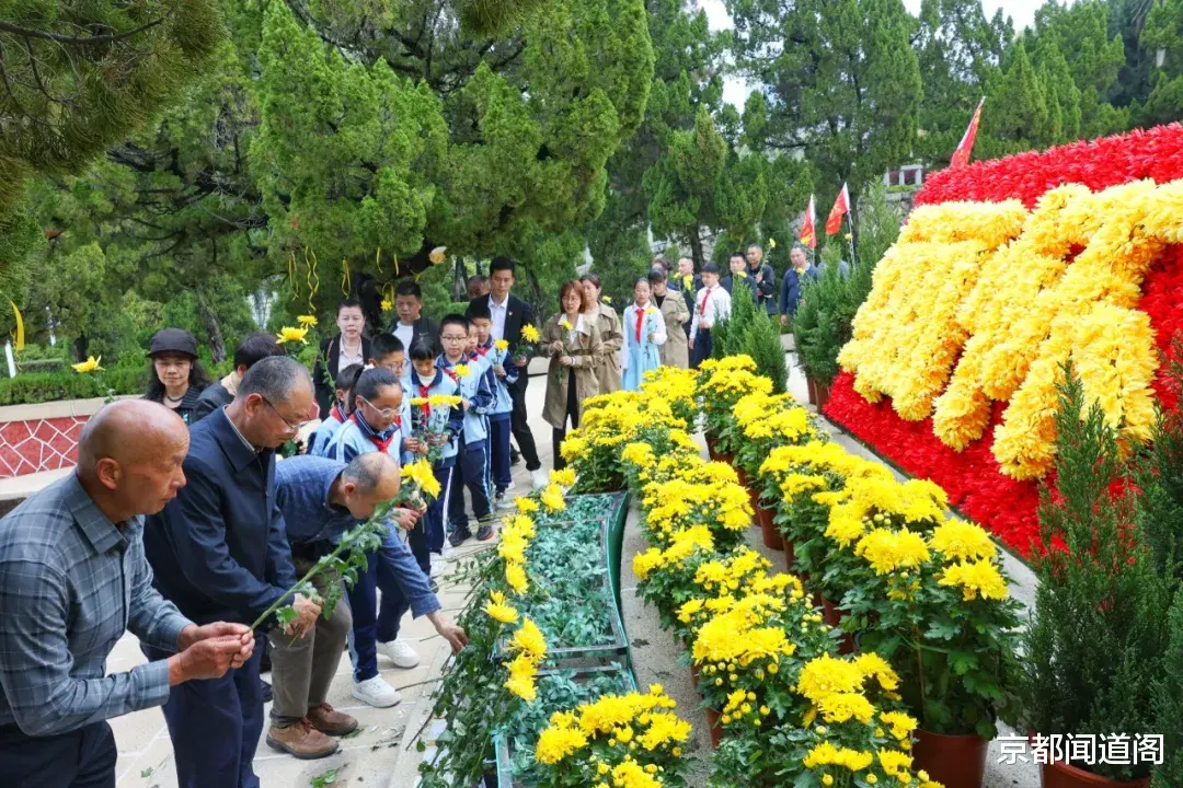 “脱帽!向革命先烈默哀!”祭扫活动总指挥、退役军官朱有良的声音沉稳厚重,穿透微凉的烟雨,响彻陵园上空。全场肃立无声,唯有清风穿松,簌簌作响,似历史的轻语,跨越时空与英烈对话,诉说着山河无恙、人间皆安的告慰。默哀毕,退役军官代表与金鸡亭小学的少先队员携手缓步,向纪念碑郑重敬献花圈。一个庄严军礼,两代赤诚目光,在丰碑之下深情交汇,完成一场跨越岁月的精神接力——英烈忠魂,由我辈守护,由少年赓续。